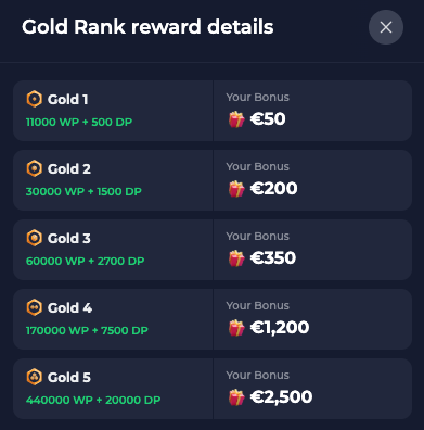 Once you enter the Silver tier, the privileges get better. You get to benefit from a special rakeback offer. This rakeback is available monthly and awarded as a returned percentage of all real money bets made within 30 days. You also enjoy this rakeback in the Gold and platinum tiers. But this time, it is awarded to you both monthly and weekly. Enjoy an additional instant rakeback.